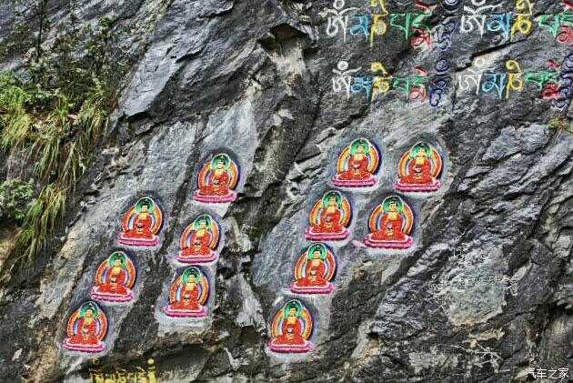 离开白玉后,冒大雨赶往亚青,道路更加泥泞~沿途的岩石上刻着很多经文和佛像