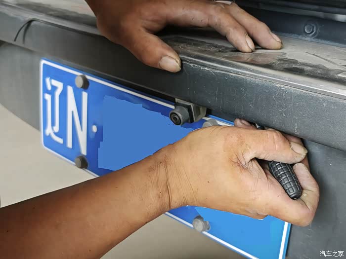 撬开摄像头后,发现线束拽不出来,应该是被车牌压住了。