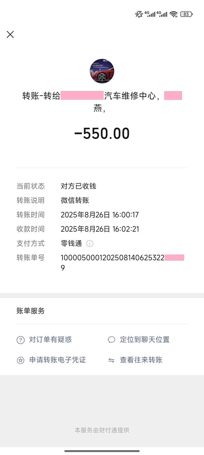 朋友这儿还整的挺专业,绑定车辆后,微信推送了工单详情。