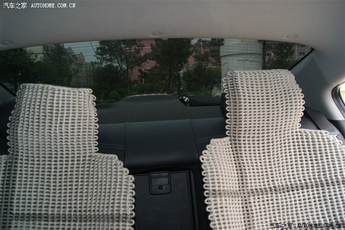 39、后配座椅特写,没有中央头枕,不能放倒,中间位置可以打开,直接取后备箱的东西。