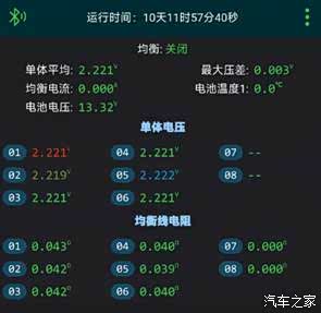 车辆静置:车辆静置一天电压下降了0.22V,感觉下降有点高,需要继续观察。可能的原因是前一天刚跑了高速,也许后边下降会小一些。