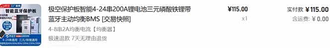 选用极空的8串2A主动均衡器,这款均衡器带蓝牙功能,可以实时监测电芯的工作情况,如果出现个别电芯的故障,可以及时发现。