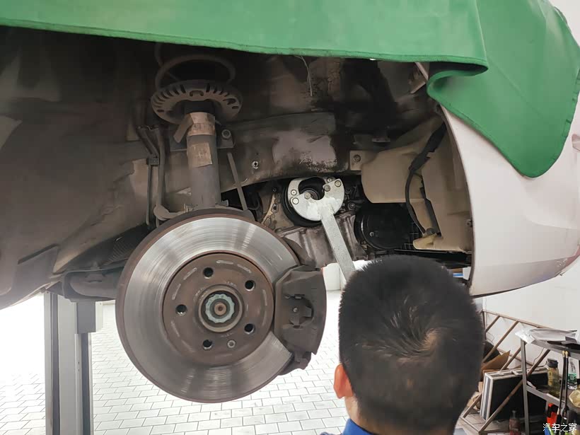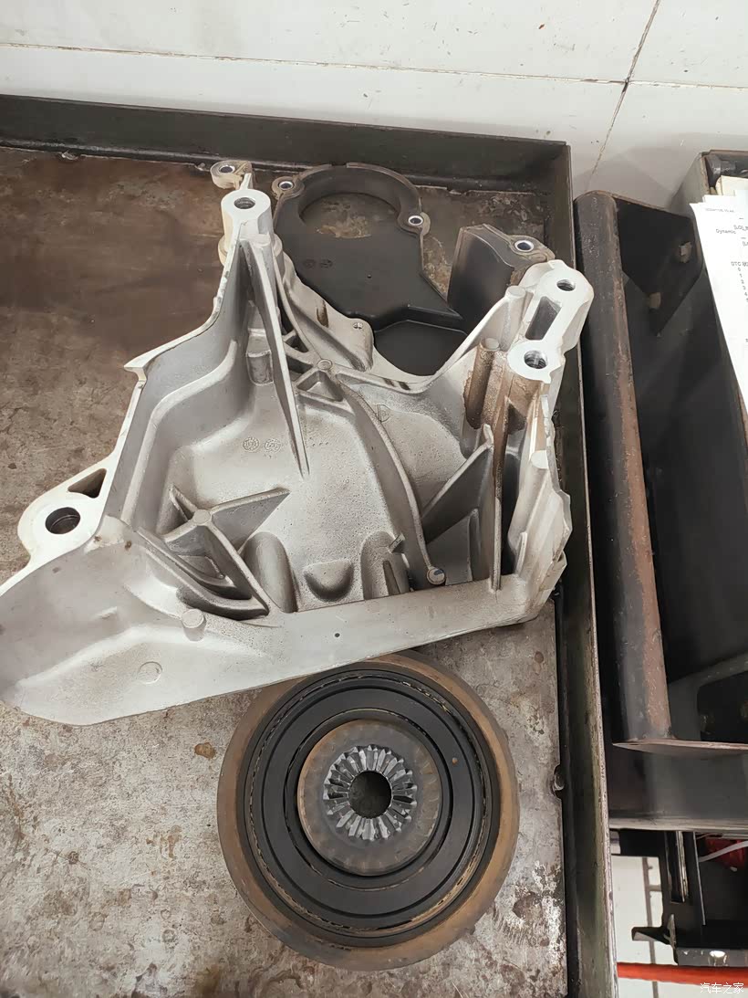 更换正时皮带需要两个配合才行,我看先把右前轮拆了下来,还有内衬也被拆下了。然后开始开正时皮带外壳,拆开后还在齿轮上做了记号,方便装新的正时皮带定位用。两个人总共花了两个小时,才更换完毕,最后把车洗干净交车给我。