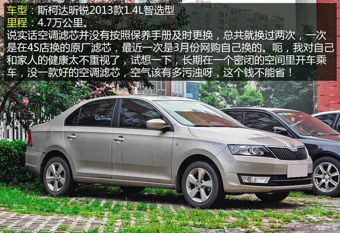 非常有幸参加这次TT空调滤芯试用活动,先介绍下我的车型:斯柯达昕锐2013款1.4L智选型。车是2013年5月份买的,到现在3年3个月,行驶里程4.7万公里,说实话空调滤芯并没有严格按照保养手册及时更换,总共就换过两次,一次是在4S店换的原厂滤芯,最近一次是3月份网购自己换的。呃,我对自己的健康还不够重视,大家别学我,空调滤芯事关自己和家人健康,这个钱不能省!
