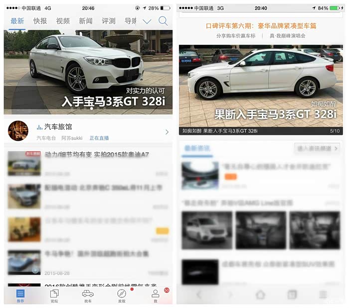 (左侧汽车之家主APP首页焦点图 右侧汽车之家触屏版首页焦点图)