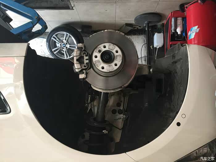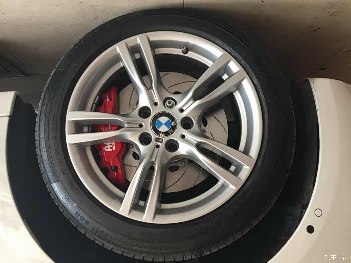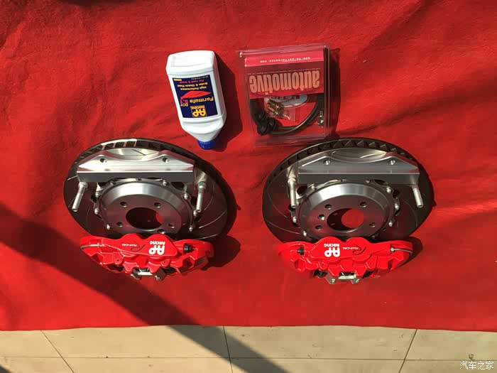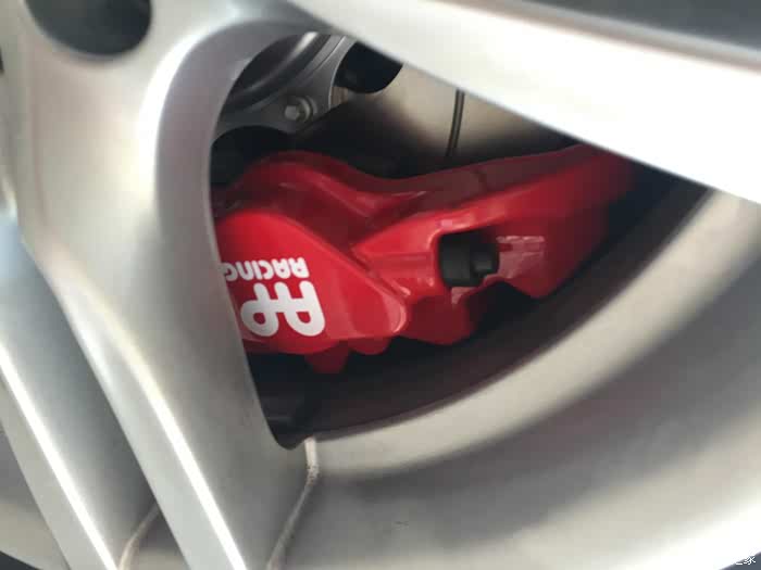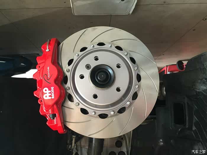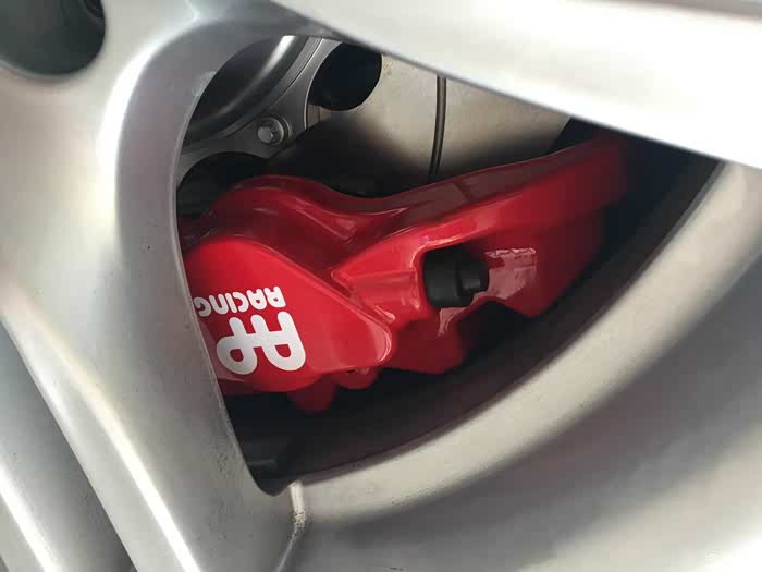 尺寸非常吻合 这是能装的最大的四活塞卡钳了 距离轮毂只有3毫米左右的间隙 非常精准的安装