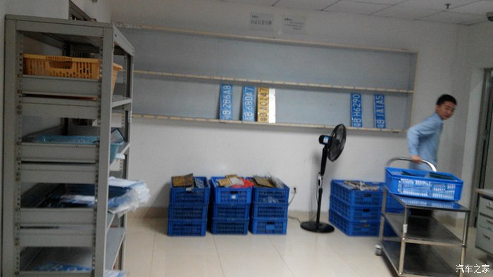 办完邮政快递,出门下楼梯左转就是领取车牌的,10选1是当场就能拿到铁牌的,排队,把两张受理回执给前台录入然后就是等个10来分钟。