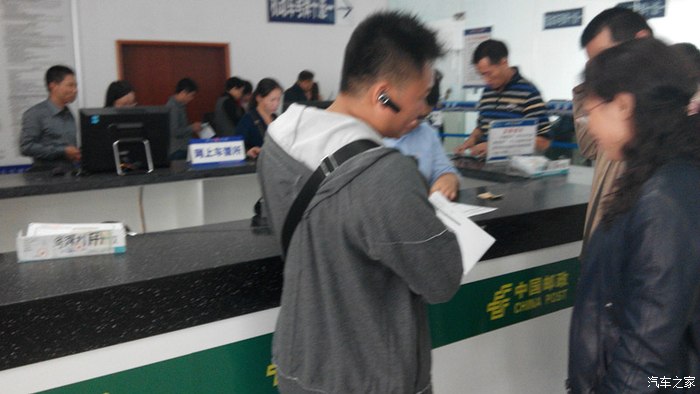 上图箭头那就是邮政填单处,快递费20元,旁边是打印环保标志的,就是俗称的绿标,我一开始不知道,行驶证寄到了只有个合格标志又来这里打印绿标了,不知道当时能不能现场打印的,看到很多4S的带着行驶证才过来打印,不知道是不是出了行驶证才能打印。