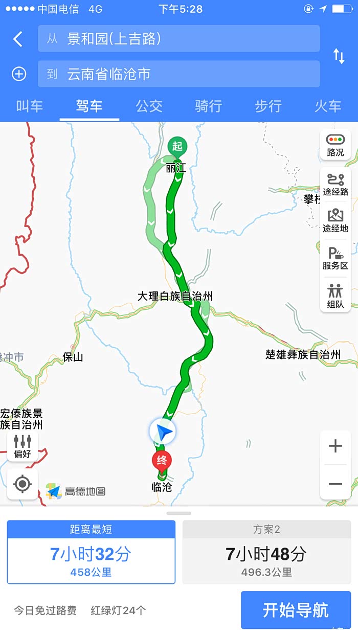 丽江至临沧全程有500公里,有条高速可以选择,一条大丽高速(大理至丽江西),一条上鹤高速(上关至鹤庆)。上鹤高速比大丽高速距离短 时间快 假期路上车辆也相对要少很多。第一天行程只是到临沧,时间上比较宽裕的,所以早上10点才从丽江出发。