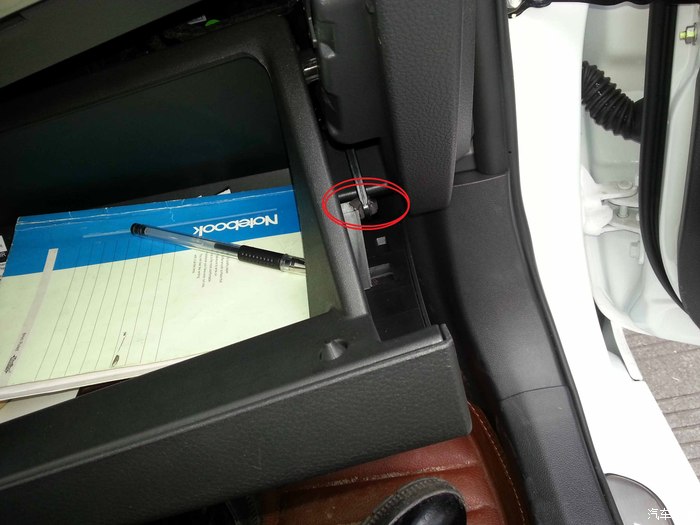 上图红圈部分就是手套箱扣脚位置,蓝圈就是空气阻尼。