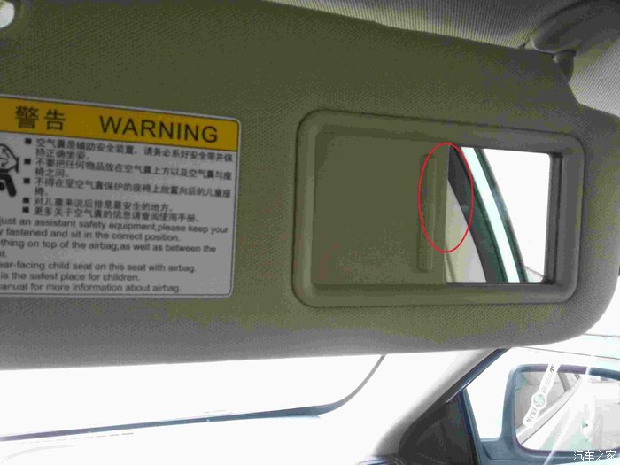 这个位置是防炫目后视镜开关,手动的,往前扳就防炫目了,这里也很松,我也加了泡棉胶。。