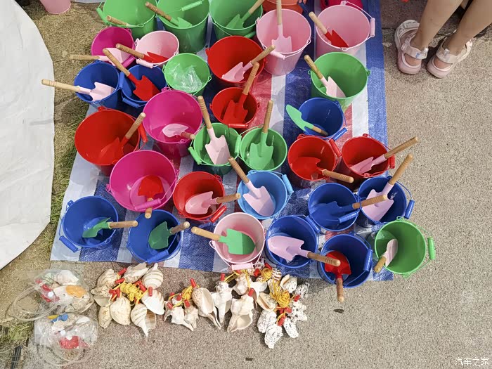 2、孩子准备了游泳衣、拖鞋、游泳圈,太阳镜到超市买了路上必须得零食、饮料,有的孩子喜欢挖沙,可以提前准备小桶、小铲子这类的东西,也可以到景区的停车场买,价格不贵,泳衣啥的停车场都有