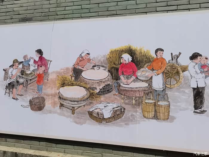 墙上画了一些农村劳动的场景,不是山东的或者鲁南这一片的可能不知道他们在做什么(其实是在摊煎饼,那个大的路子上的是鏊子)