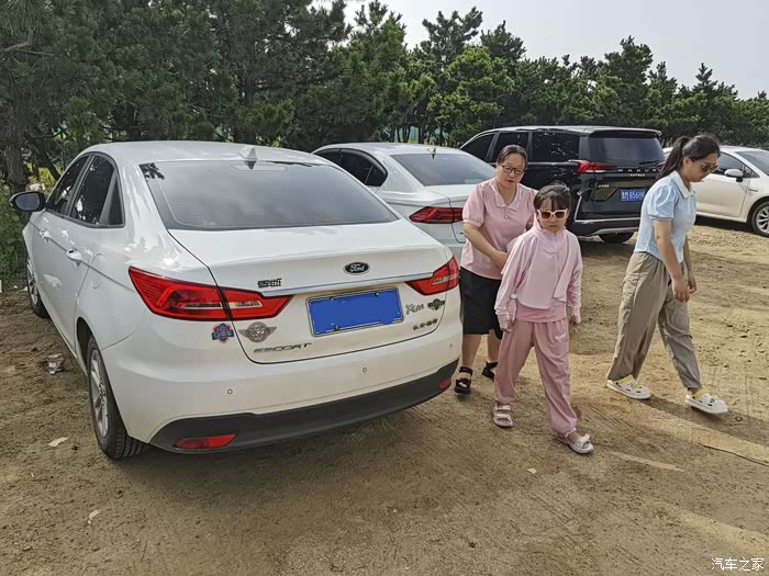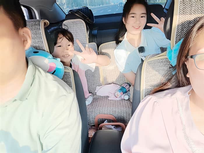 后座的俩孩子自拍,一家子口出去自驾游,爽歪歪。