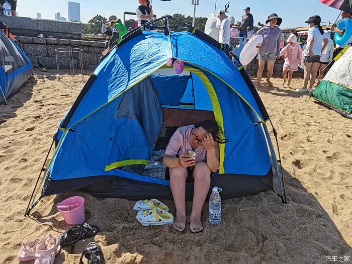 海滩上人很多,这种小帐篷也有很多,自己最好带一个,既有休息的地方,也能遮阳、还能换个泳衣,实在是太方便了。
