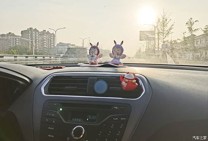 迎着朝阳,我们愉快的出发了,因为是一只向东走,所以一只是迎着太阳再走,主驾驶感觉阳光刺眼的话可以打开主驾驶上方的遮阳板,另外,如果你要是长途出发的话一定要早点出发,要不然早高峰的堵车会让你崩溃。早走,路上车少,很顺畅,心情也好。