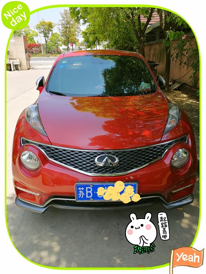小Q是去年12月份我老婆买了带进我家的,我们本来是陪朋友去看Q50的,进店里老婆就一眼看中这台车了,就冲这车外观,动力操控内饰科技感就统统抛诸脑后把,开回来在马路上,回头率的确是杠杠的,比我那烂大街的灰仔拉风多,烈焰橙当时是我强烈建议的,我觉得想这小车就得醒目,就得给人眼前一亮得感觉,不过别说,虽然这是一台小型SUV,过弯得感觉却像一台小钢炮车,抓地力极好,信心十足,以至于我们后来都后悔为什么不上1.6t顶配.小Q驾驶乐趣很棒,原装进口的品质,只需要加92,油耗喜人,保养也免费,很不错的一台车,好了,接下来看图把正面照来一张,六眼灯,我们做了一些小改装侧面底盘离地间隙不低,通过性尚可有一次,旁...