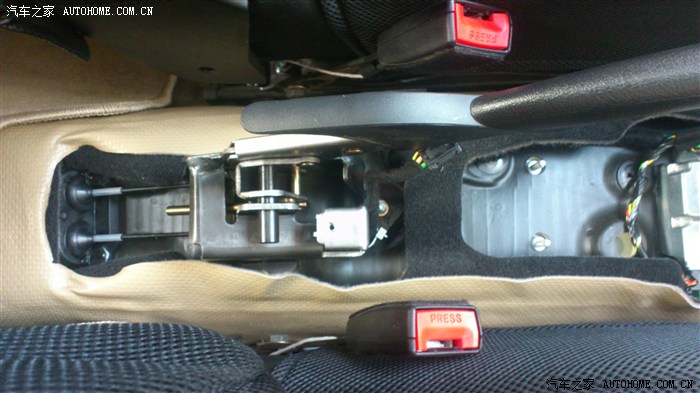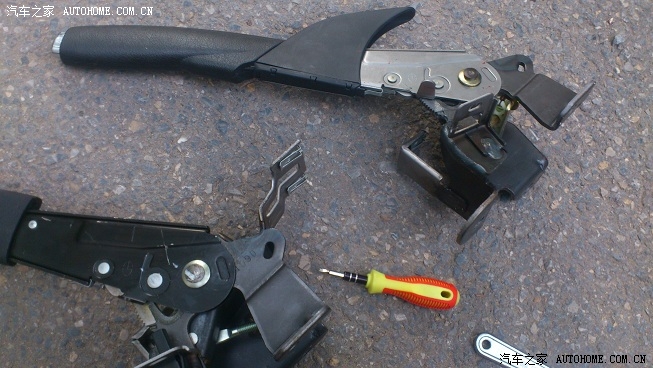 新旧手刹对比,多了个扶手箱支撑架,下面的手刹传感器要换到新的手刹上