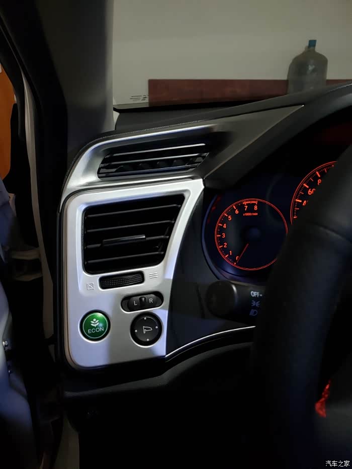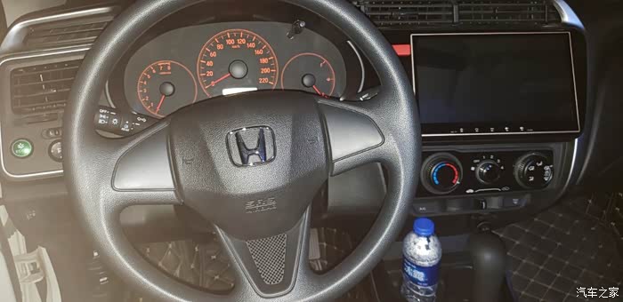 方向盘黑不溜秋塑料,飞度当时也是低配,但是设计感很强,有银色丁字裤式饰条,无论手感视觉都很棒!机械仪表盘本田还分个高低配不一样,喷一下!