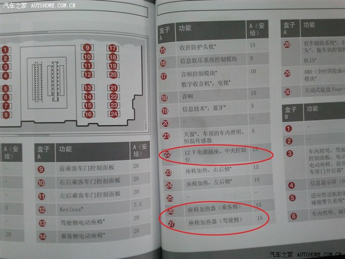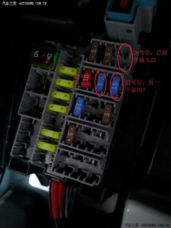 对应手册里的位置号,确定要找的保险丝(22,15A,蓝色的)