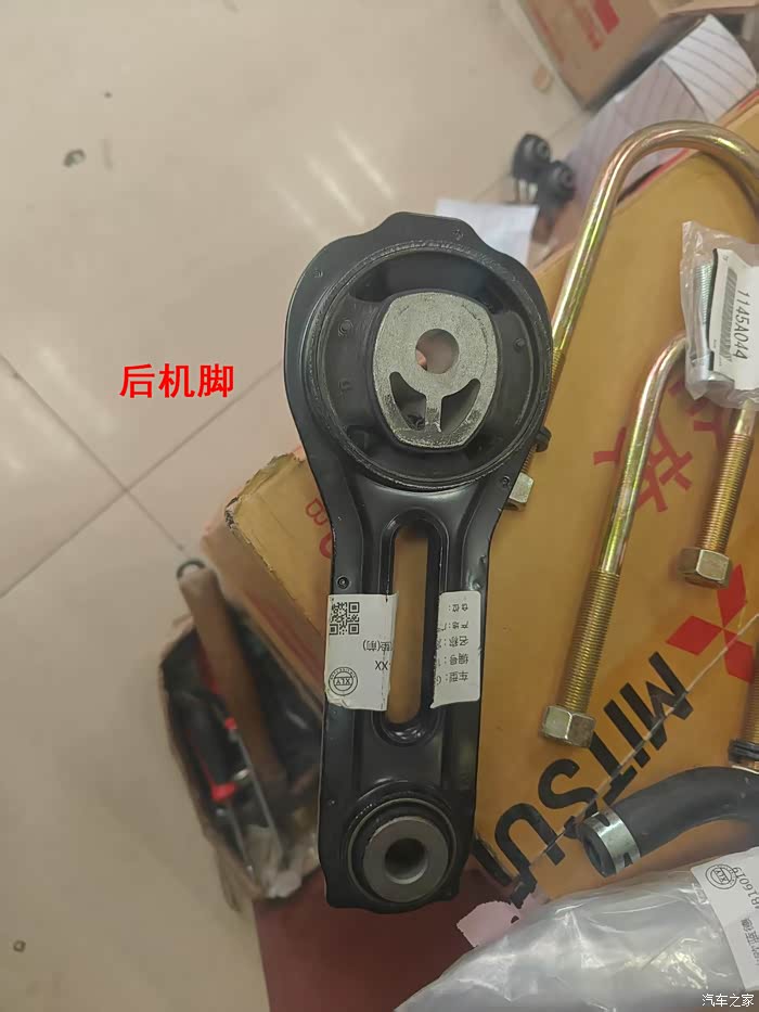①后机脚,没买到纯进口的,买了广汽原厂的,这个机脚位置在下面元宝梁上,扁的。