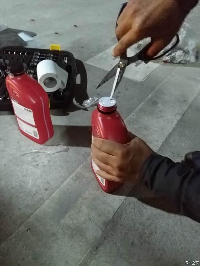 拆封变速箱油,1夸脱一个。我买了七个,但实际上用不了这么多,留着下次。