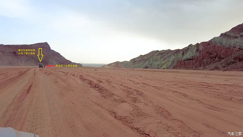 对于类似这种松软沙路驾驶,过程之中一定不要松油门,更不猛踩刹车,切记切记,否则很容易刨坑陷车。