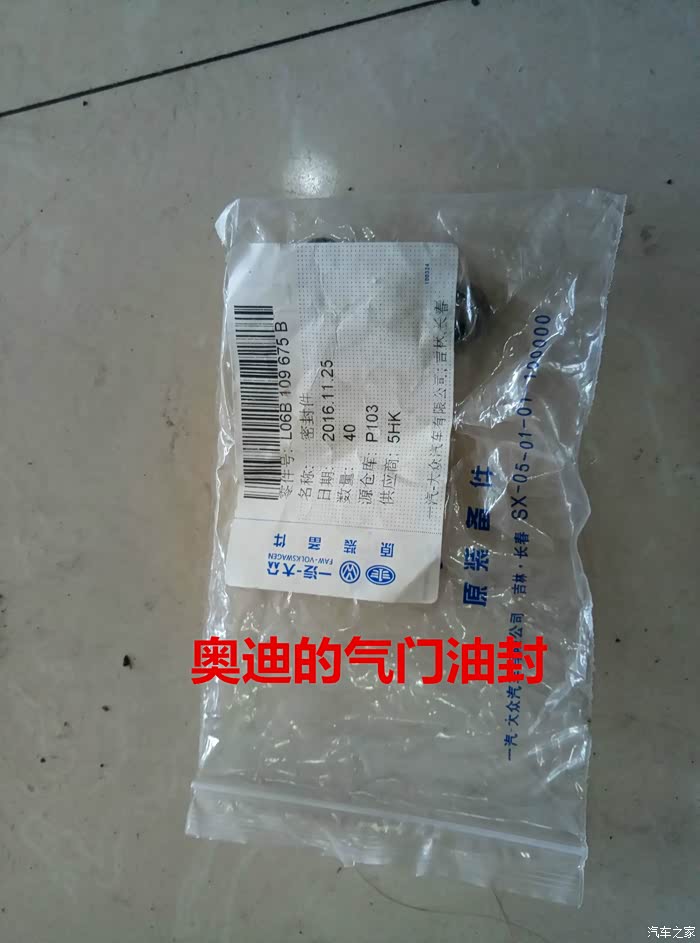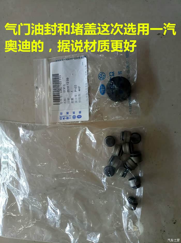 2、然后是气门油封。虽说EA888发动机普遍装备大众和奥迪各款车型,我个人认为,奥迪上用的部分密封件材质优于大众的,例如气门油封,这个就是一个防止烧机油的关键,所以这次用的是一汽奥迪的气门油封。