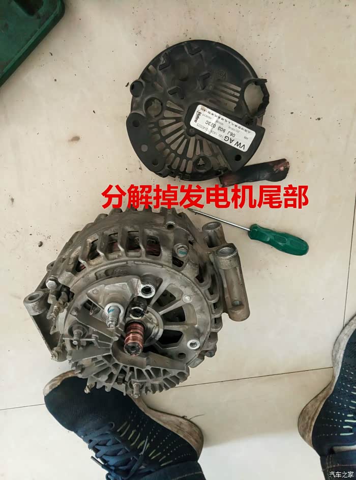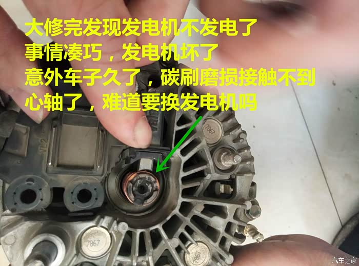 机油变速箱油都加进去,顺利启动发动机,忽然发现电瓶灯亮着。我去,车子开来的时候好好的,没这个问题呀,难道大修之后,发电机坏了?没理由啊,发电机拆下来之后就一直放货架上,没人动过他呀。唉,要说倒霉的时候,放屁都砸脚后跟,这个世界上就是有这么巧合的事情,经过测量,发电机不发电是确定的事实。难道要换发电机?原厂的法雷奥发电机老贵了,好几千啊。别怕,一般发电机不发电,都是碳刷磨没有了,订碳刷回来换掉,100元解决问题。