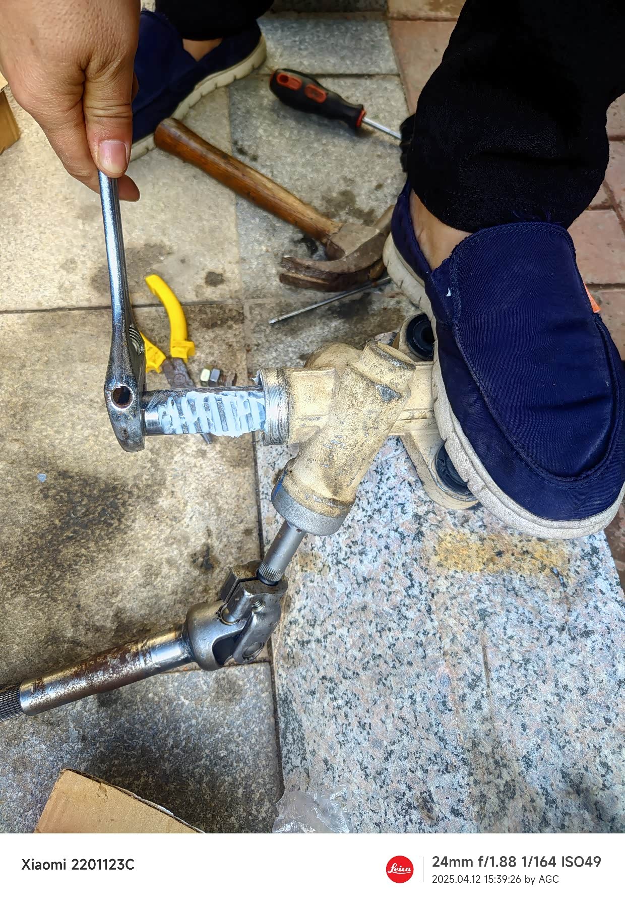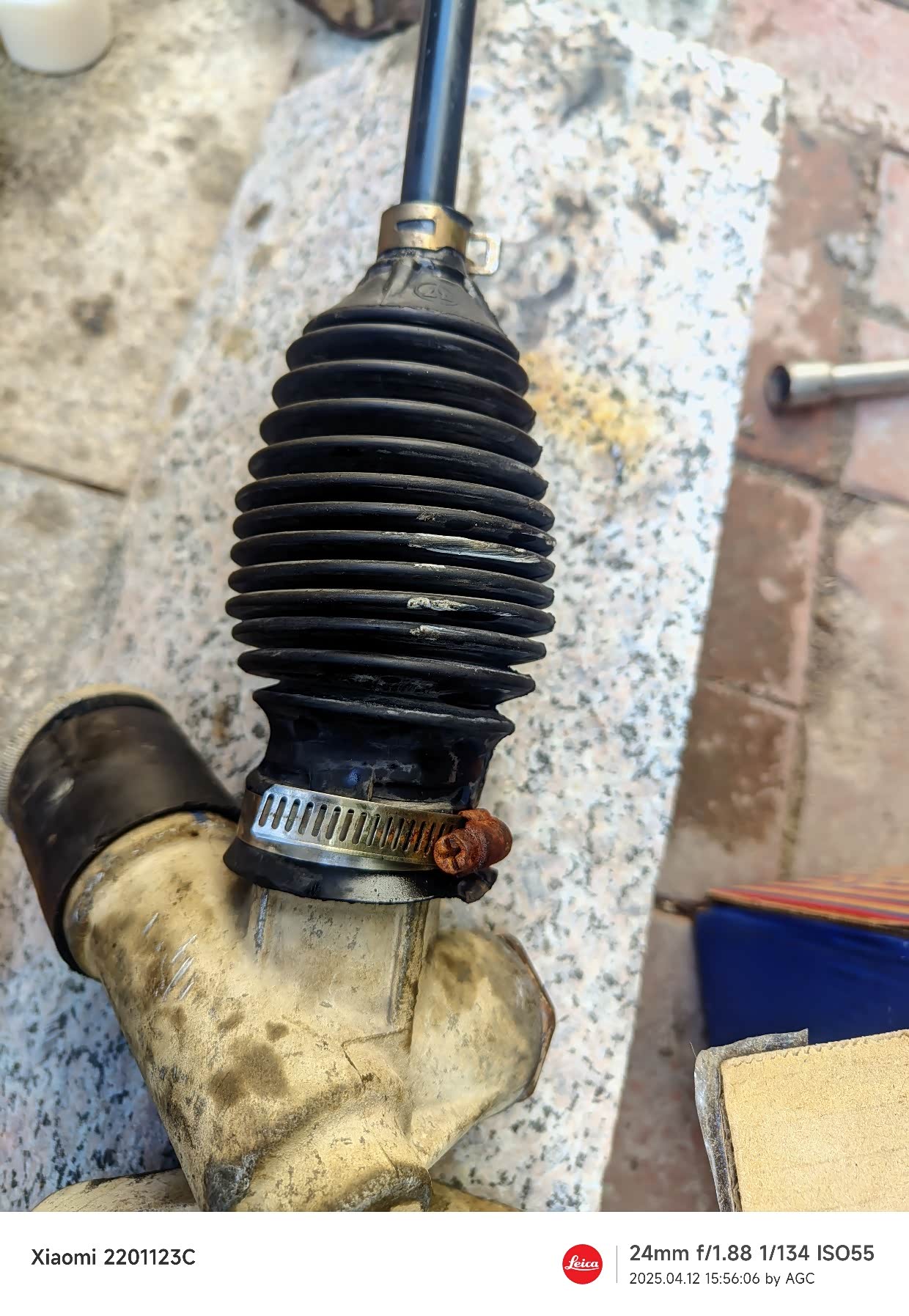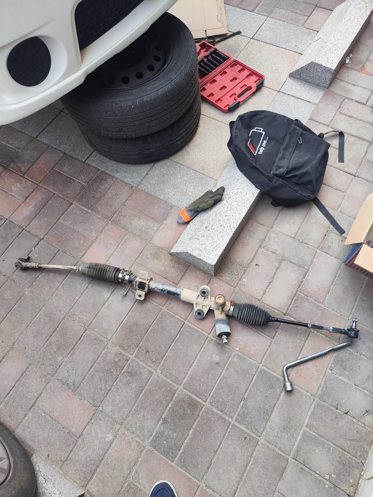 哦,忘了说了,我在家门口拆掉方向机,方便拿工具等设备,首先用3个马腿把车支撑起来,然后拆除轮胎,方向机拉杆球头螺丝,方向机4颗固定螺丝,方向机十字街螺丝,还有发动机后鸡脚,不拆方向机拿不下来。然后从副驾驶把方向机抽出来即可,总的来说,利亚纳方向机还是很简单拆下的。一个人在车底下工作,一定要保证马腿固定安全,安全第一。