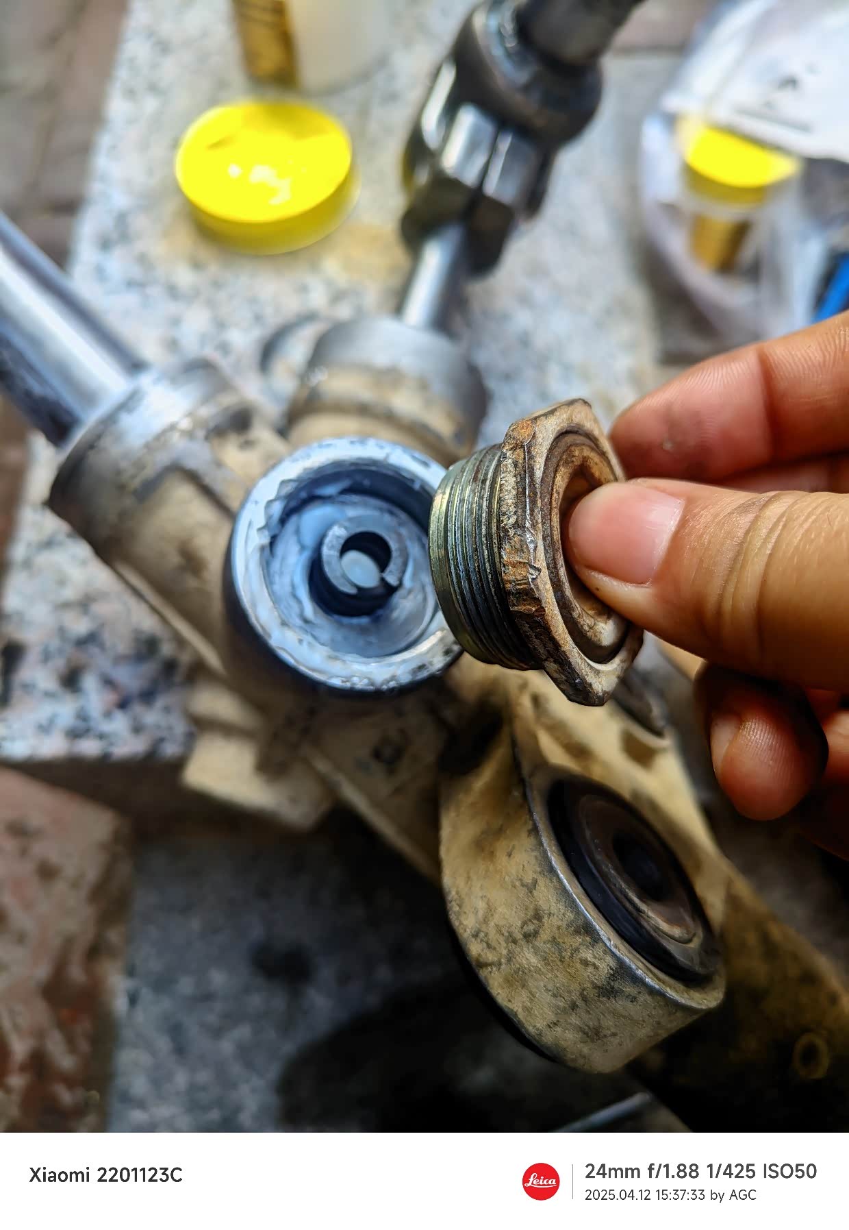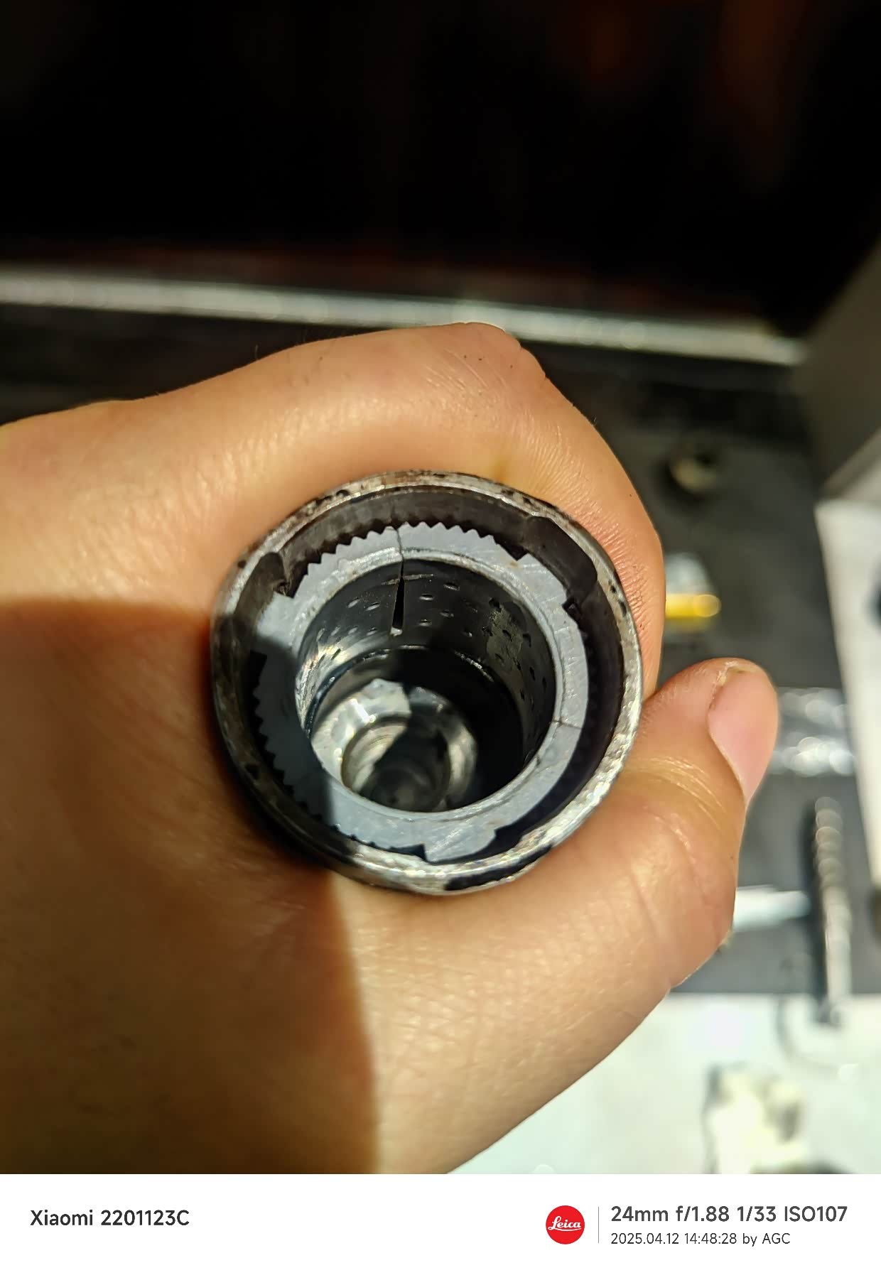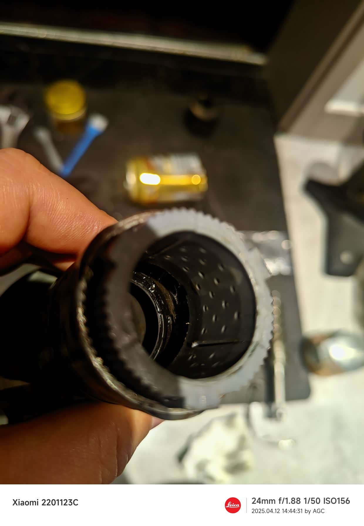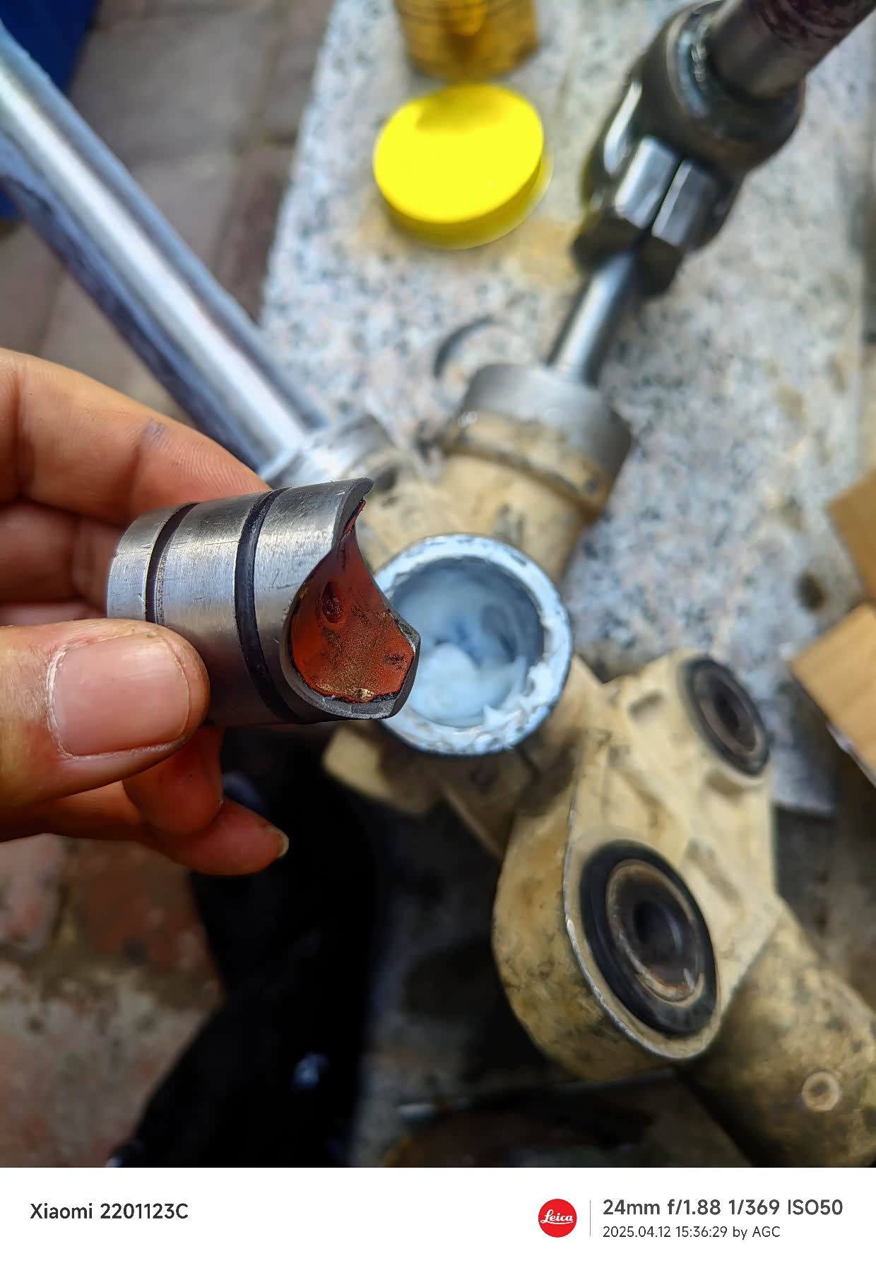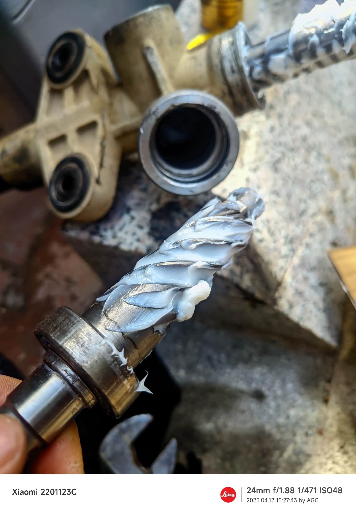 外油封因为尺寸偏差,松旷,我用一定筑工胶粘上。