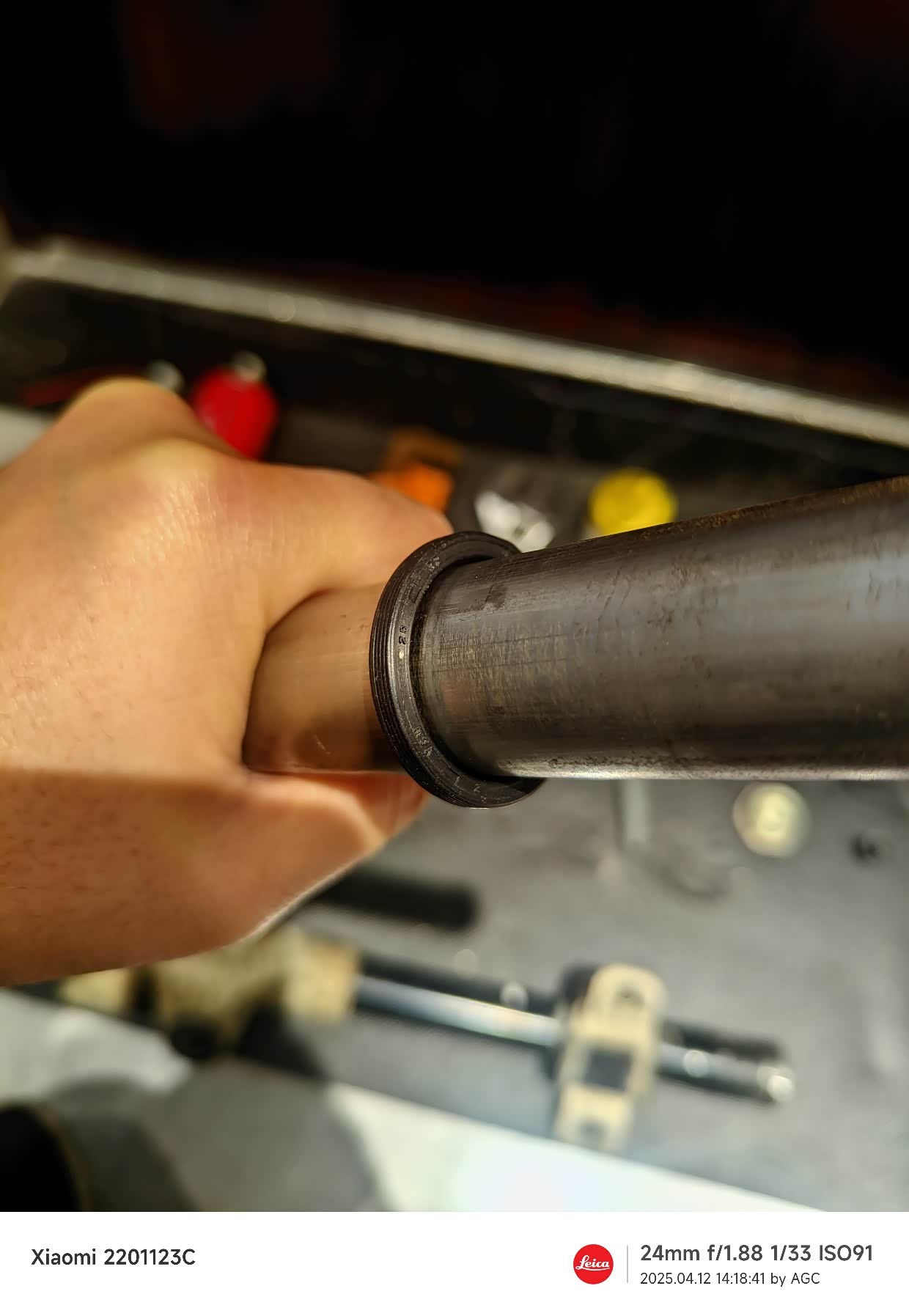这就是连装好了油封,油封尺寸是内经25外径32,有点松,其实可以买外径33的。
