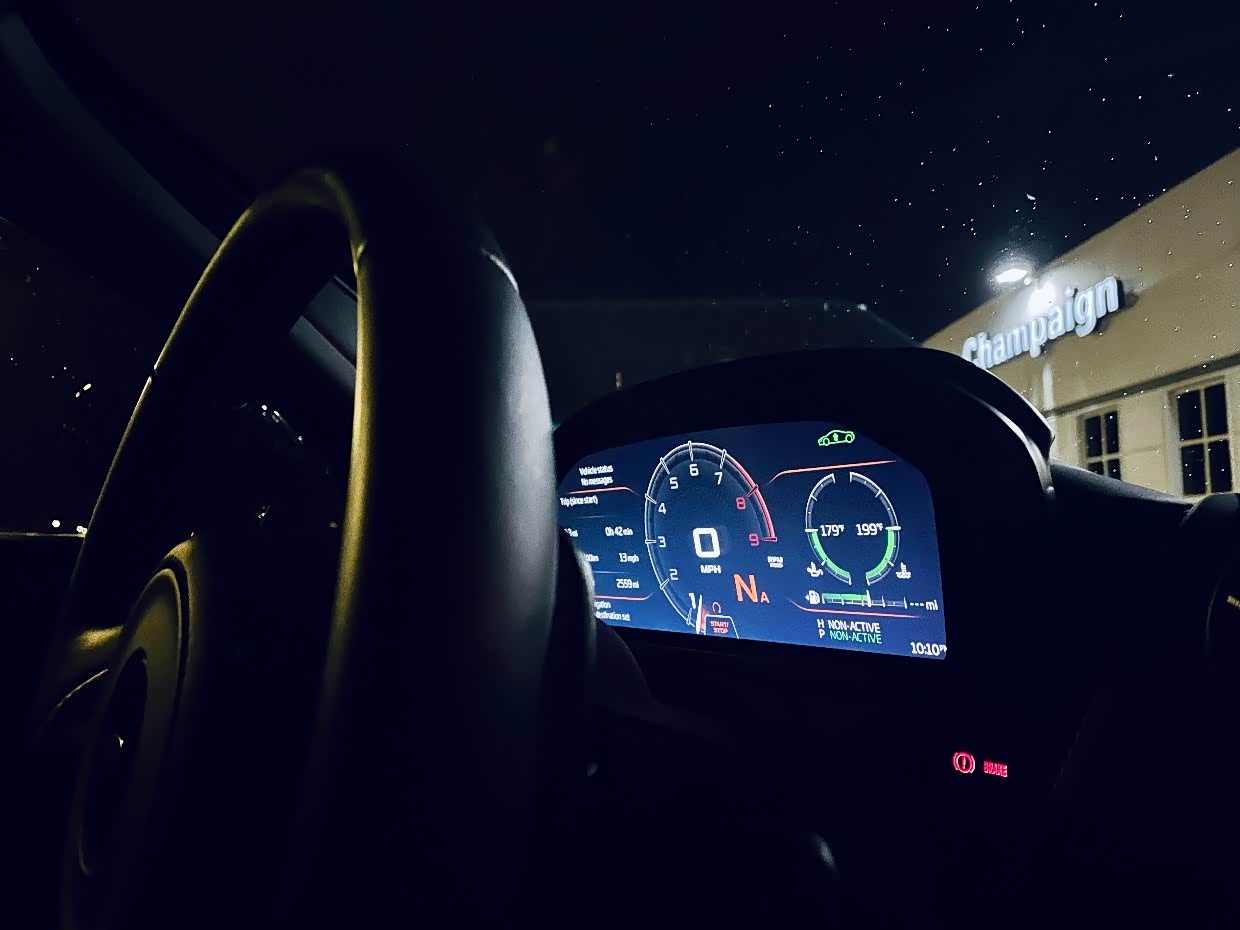 “720平时开的时候调到舒适模式时特别温柔,悬挂也会变软动力想踩也能说来就来,但是也不会太激进,sport的时候油门响应会变敏感,基本没有涡轮延迟,声浪也会出来更好听一点,调到track的时候仪表盘会降下来,动力会全部解锁710匹。”