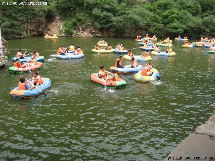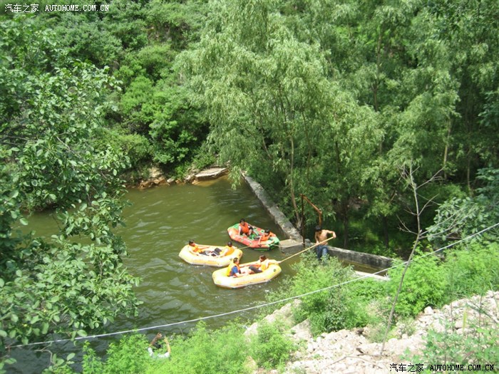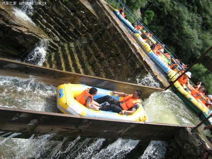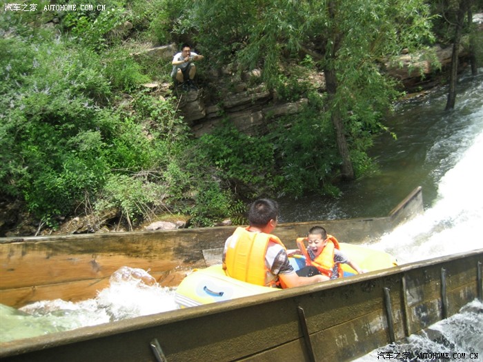 五个人转了两个多小时,将近11点半时到达漂流起点,刚开始觉得买的票亏了,没多长距离吗,要那么贵的门票。就是坐在皮筏上还是那么认为,可真正开始后,才觉得什么叫刺激!不过只要抓好,绝对是有惊无险。