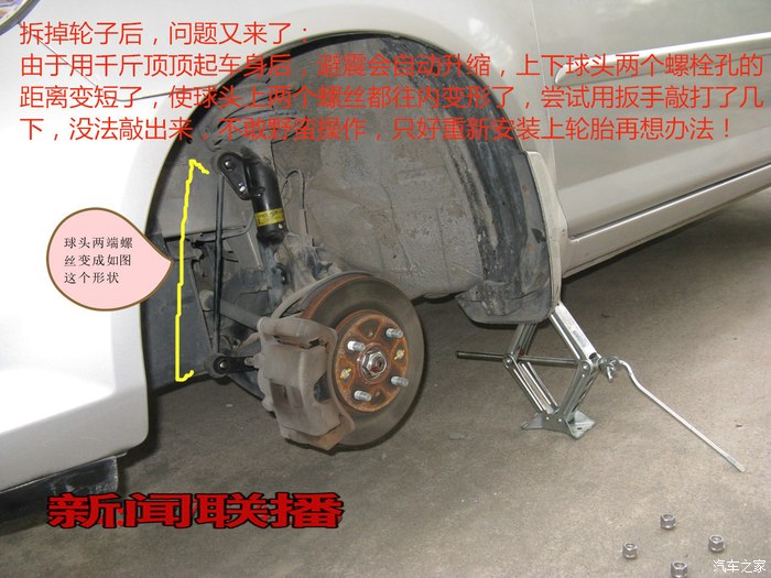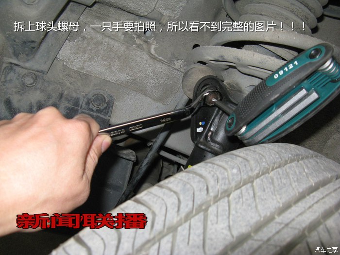 由于是自己第一次动手,甚至还是自己第一次拆卸轮胎,整个过程走了不少弯路,因为之前看网上有人发过的类似帖子,都是拆下轮子换的,其中还有因为取不下球头,使用撬棍等工具来帮忙的,个人感觉这样不太好,因为我们不了解车底盘结构,万一用蛮力把某个机件整变形了,就得不偿失了。通过以下方法,可以做到不需要拆卸轮子就能轻松更换球头的目的。