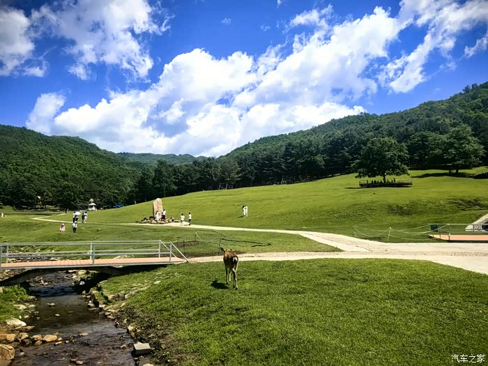 这里腹地是大半个山头,山间有草坪、柞树、溪流,生态环境非常适宜,经常有野生鹿出没。夏天草木葱茏,满眼翠绿,宛如置身于绿色的海洋。景区内还有一条名为鹿鸣溪的溪流,溪水潺潺,清澈见底,为景区增添一份宁静与惬意。
