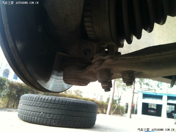 换完球头的左前轮。