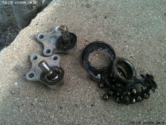 拆下来的球头和轴承残骸。