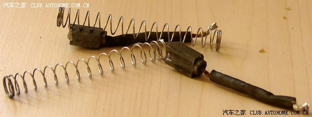仔细研究碳刷安装的方式,发现是把小辫子焊在基座底部,里面有个弹簧顶着。