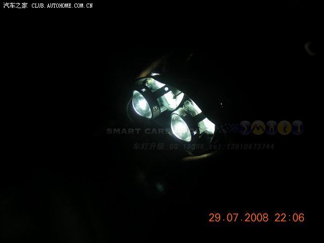 偶的银妹妹历经了2次氙气改装后 终于完成了最顶级的双氙气改造了,过程可谓艰辛啊,历时2天的艰苦奋斗,终于修成了正果。下边把作业交了,斑竹老大,俺是个懒蛋,为了大家分享323的顶级灯光改造 忙了 3个晚上了,给加个精以示鼓励吧,嘿嘿。(因为要保护朋友的技术及著作权,图片应朋友要求加了很淡的 LOGO ,请老大理解技术提供者的辛劳。向改灯的老杨同志致敬!