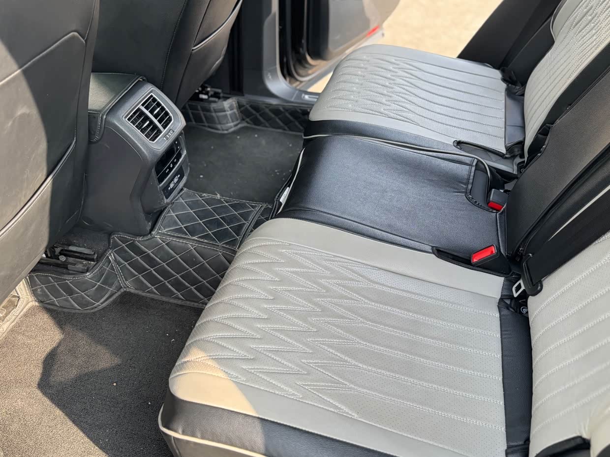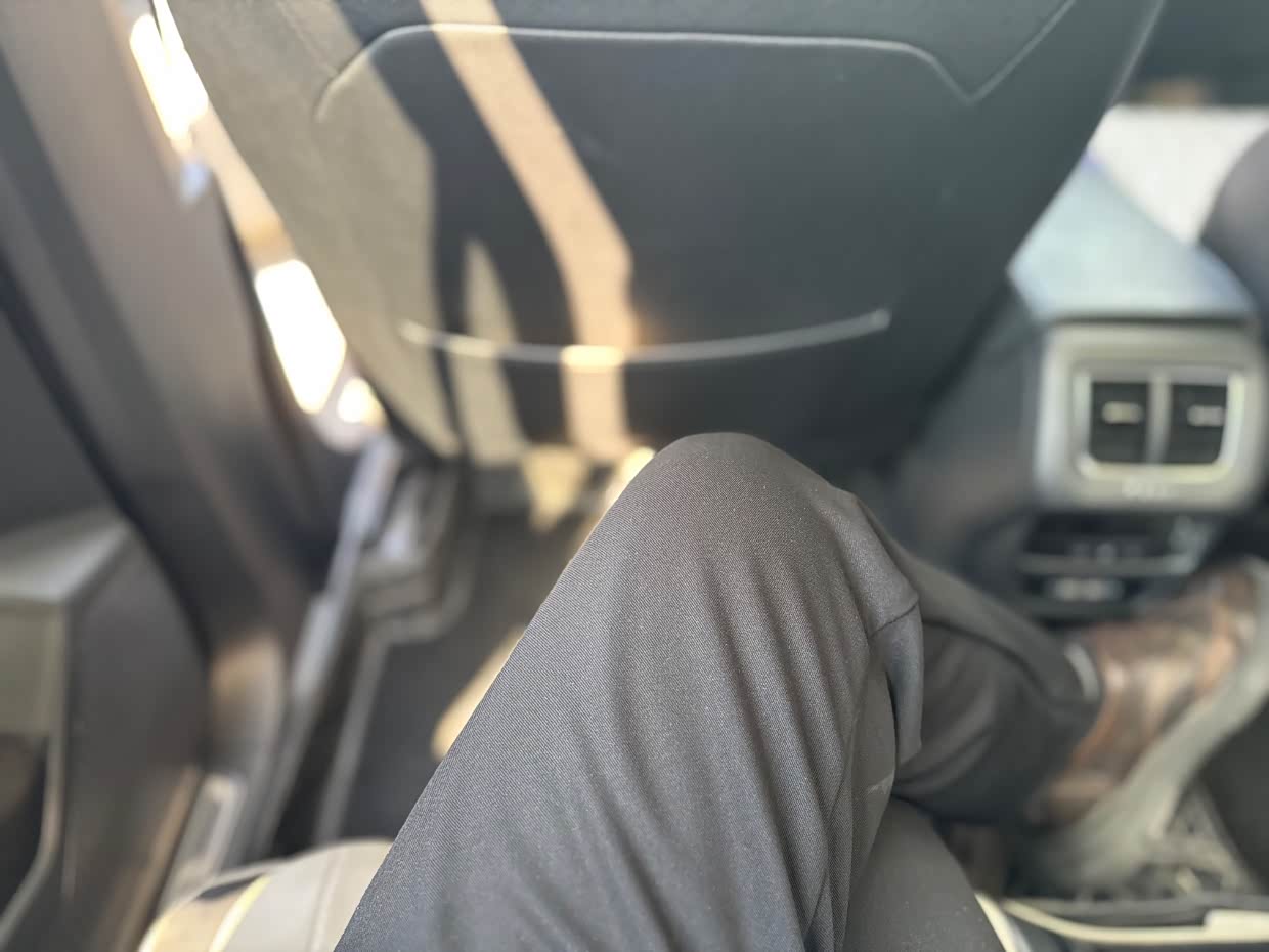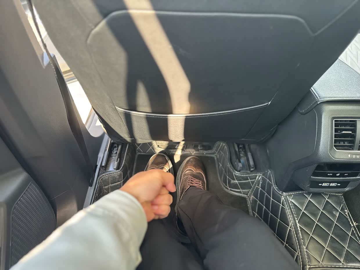 后排空间也是非常宽大,大空间也是探岳的一大优点,在后排翘个二郎腿也还有多余空间,在前排调好的位置下,后排还有3拳的腿部空间,头部还有2拳的头部空间,乘坐很放松也没有一点压抑感。