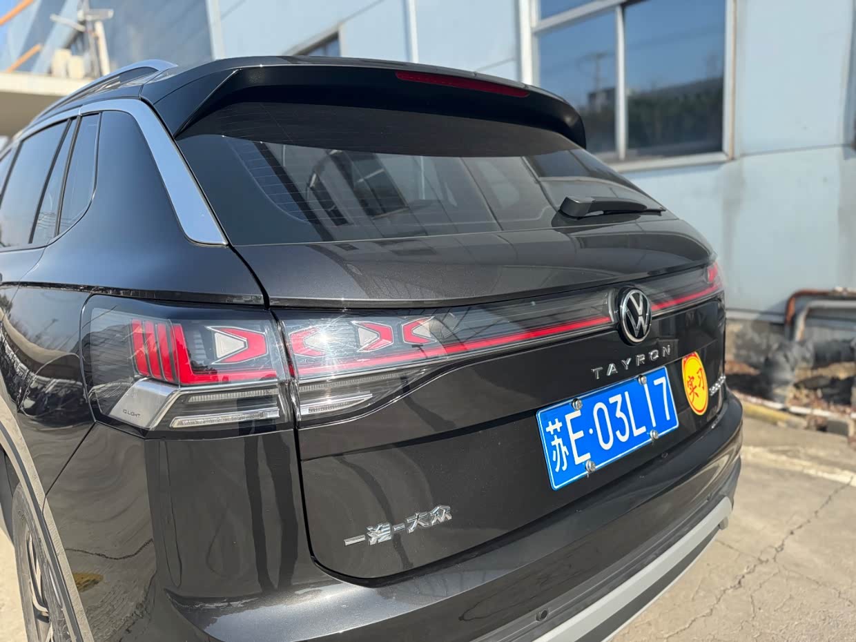 车尾部分嘛,总体简洁又饱满,尾灯点亮后与前大灯遥相呼应,后面保险杠加了银色装饰件,假的双边共单出的排气布局看上去很历害的样子,哈哈,就是有点窄了,而且也就是个装饰,再说我这辆也是300TSI的,1.5T的动力在路上也只有吃灰的份哈哈