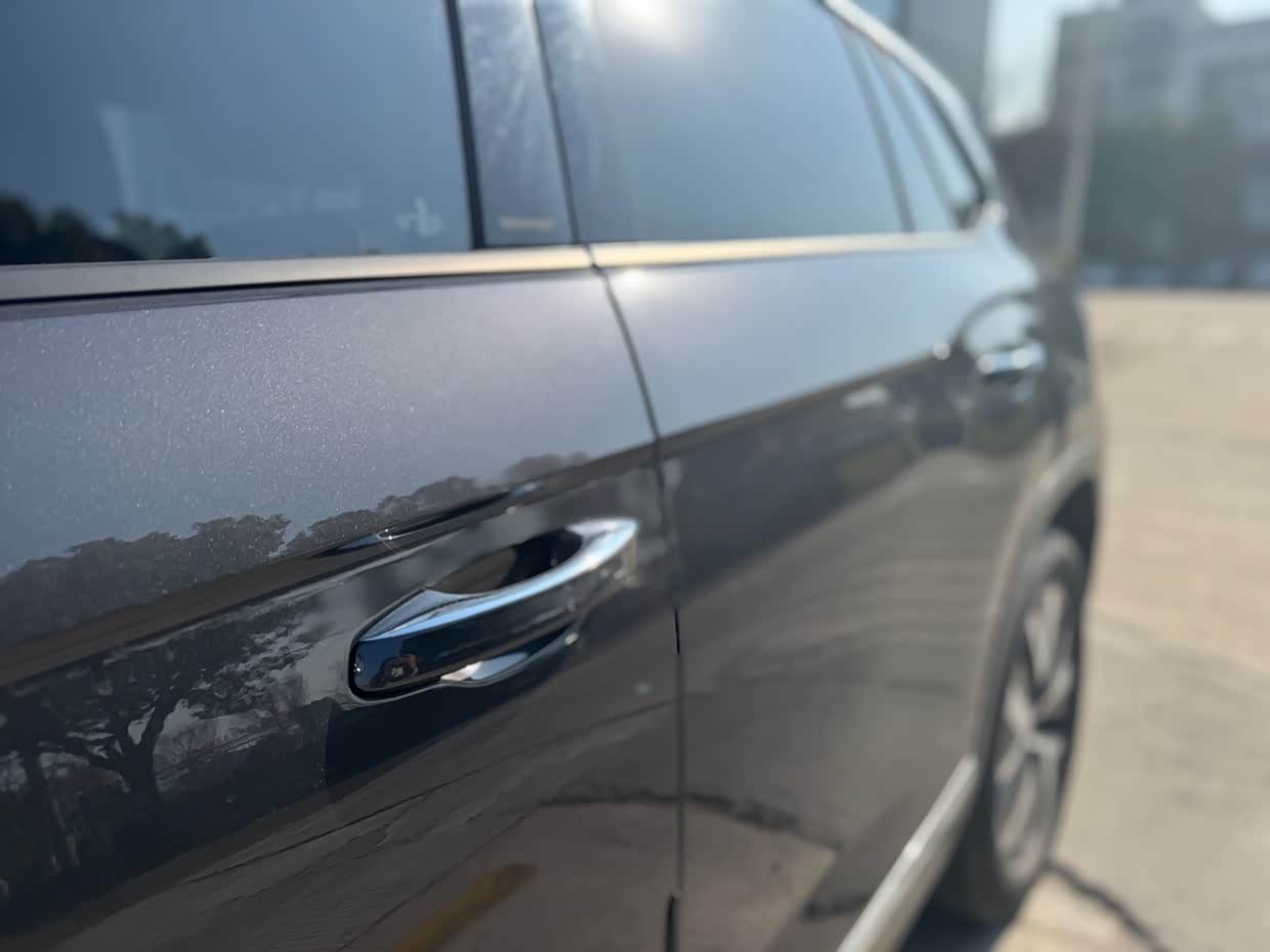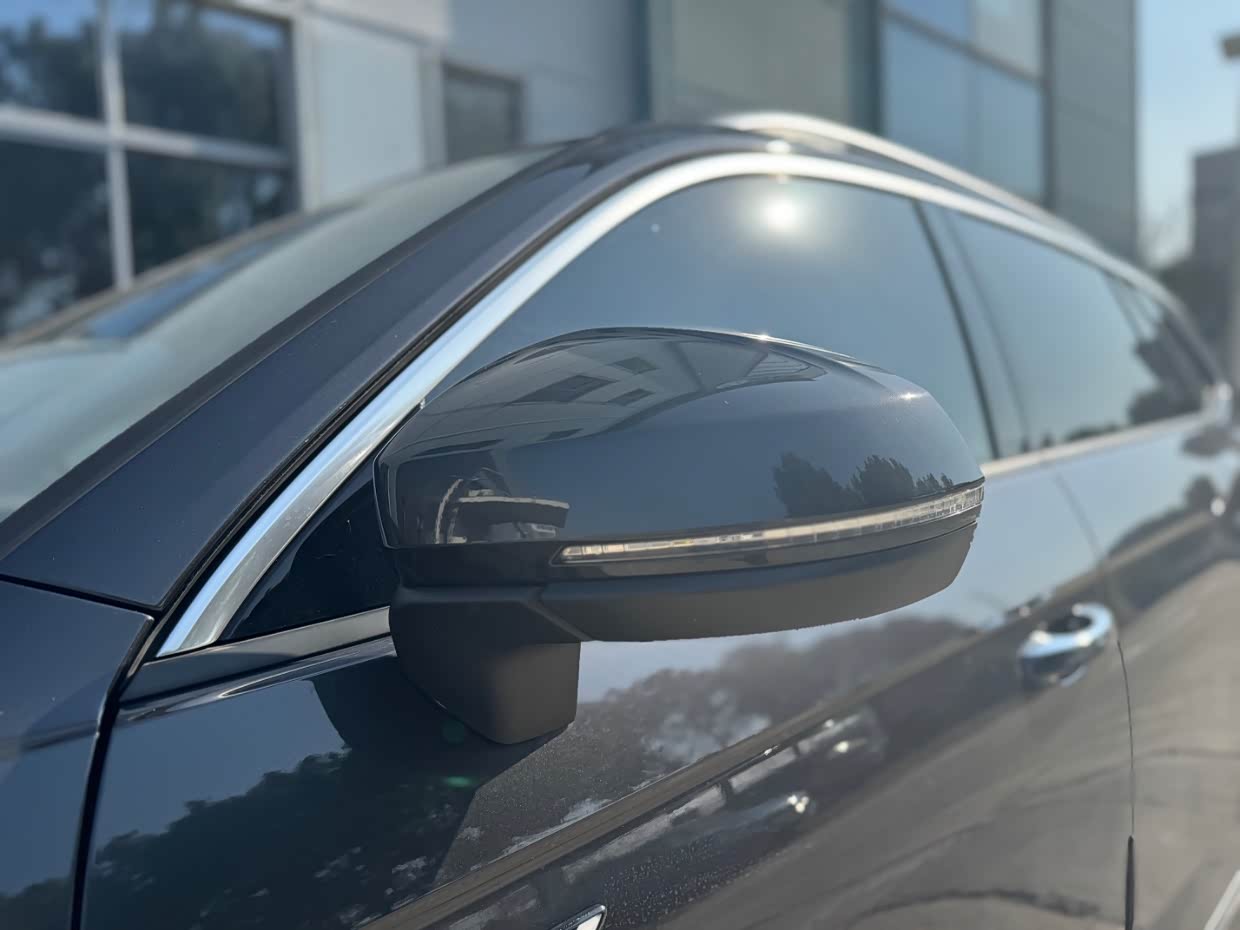 18寸的五幅铝合金大轮毂,在整车搭配上还是比较硬派的,运动感也十足,车顶还配有行李架,给出行装载放置物品带来了极大的方便,不过我也没用上,传统式门把手,使用起来很有手感,外后视镜带多向功能,后视镜下面的标志显示着车型的身份,