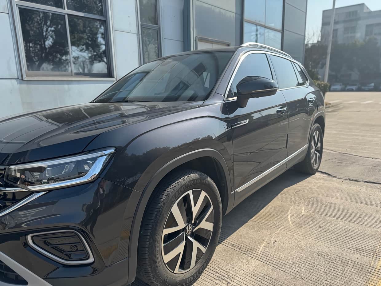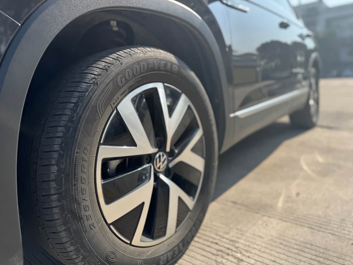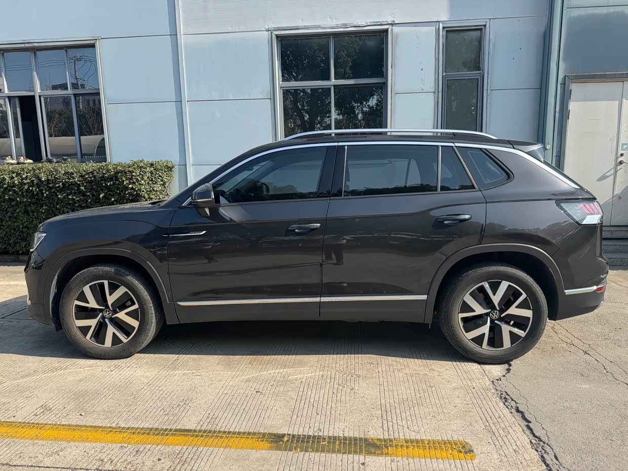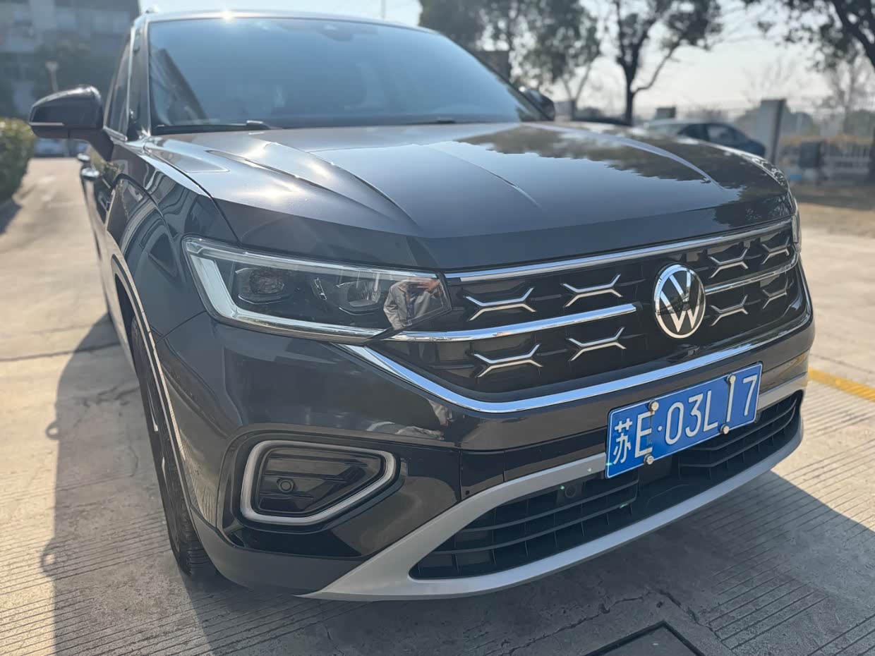 探岳的外观怎么说呢,沉稳性吧,大体上也是大众的家族元素,整体展现出稳健的特质,前脸上是宽大的横向镀铬进气格栅,两侧LED大灯组很自然地衔接,特别能感受到宽阔又稳重的观感,LED日间行车灯点亮时很特别,也增强了车辆的辨识度,整体很有点越野气息。
