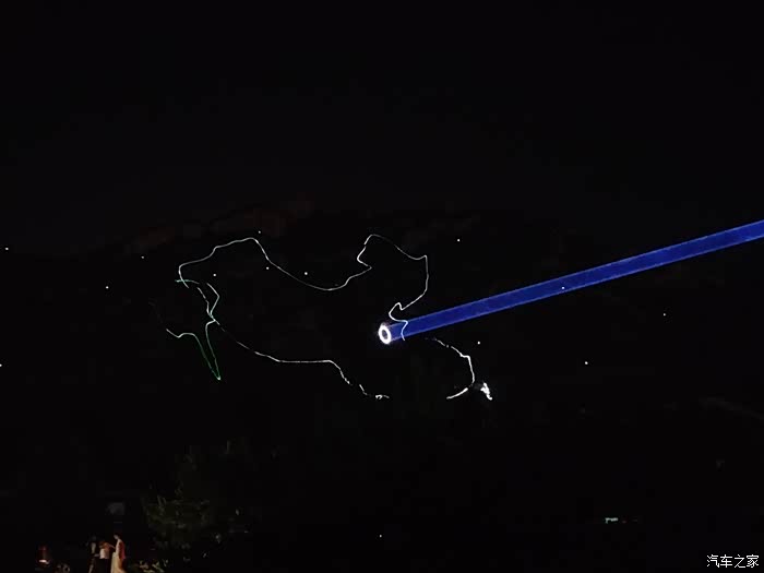 主持人此时宣布,灯光秀开始!全场灯光熄灭,远处的王子山上亮起点点灯光,很快变幻莫测,闪烁出各种图案。