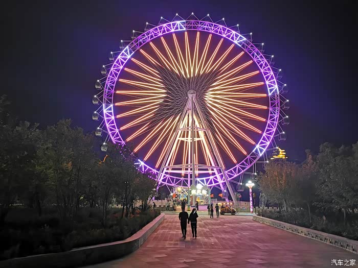 夜幕下的摩天轮异常美丽,可惜我这个“恐高症”患者不太敢上去。