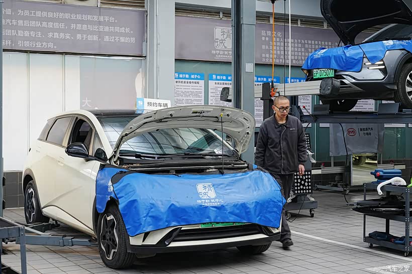 递交了钥匙、铺上保护套,小海豚就被开进了快保车间。