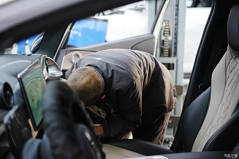 上举升机、检查轮胎、紧固底盘螺丝、检查刹车片厚度、检查防冻液、制动液液面、各种液面补齐等等,一系列动作简直行云流水,售后技师们连螺丝都经过扭矩扳手三次校验。