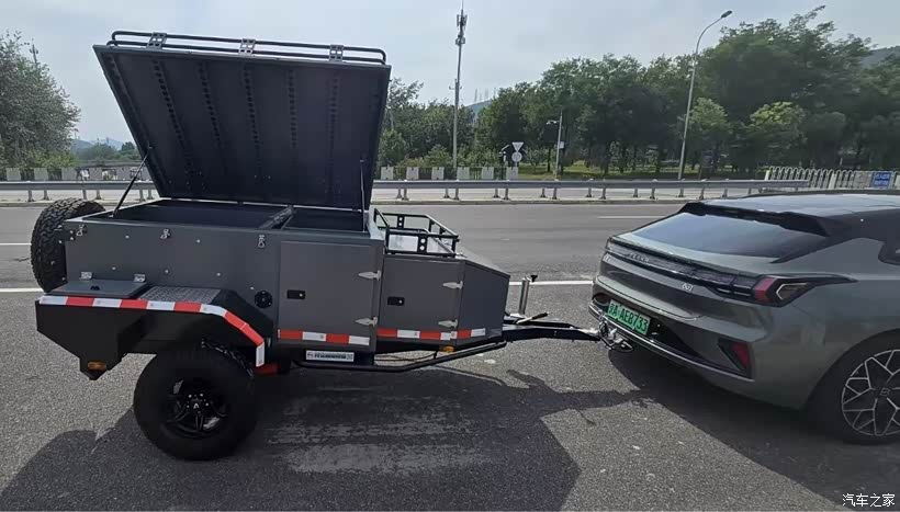 弄了一个小拖车,因为牧马人没有拖车资质极,只能拉700公斤以下的。以前有a2降级的,现在可以直接到各区县的政务大厅交通窗口增驾c6体检填表总共50块钱。这样就可以拉拖车了。牧马人的后保险杠加装无损的底座,不用的时候可以把拖钩摘下来放在家或放到后备箱。这样就没有任何问题。极氪01居然有两吨自带的拖车资质,还有电动拖车钩,因为第1次买了拖车钩有点短,不想在后备胎,只有弄一个加长的,就让朋友的极氪01帮忙去拖车,并且上牌,并装了托卡特的电磁同步刹车,牧马人后备箱正好有一个12伏的点烟器,就可以当电磁刹车的电源,安装很简单,汽配城要价太高,自己拼多多上拼的店员,还有刹车同步器,按照说明找朋友的地方安装,价格比汽配城要省1/3还多,去4s店发现了一个同款同颜色的车,一问是吉普中国的公司车,车号数字居然还都一样。前两天擦车把后视镜弄花了,然后找了个地方200块钱买了一个大视野,自己换上效果还挺好。