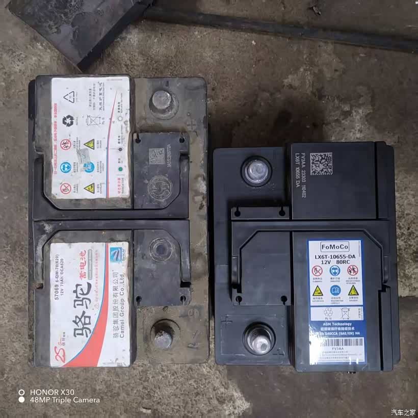 大小对比:右侧是混动原厂的50Ah电瓶,左侧是70Ah电瓶,80Ah电瓶更大